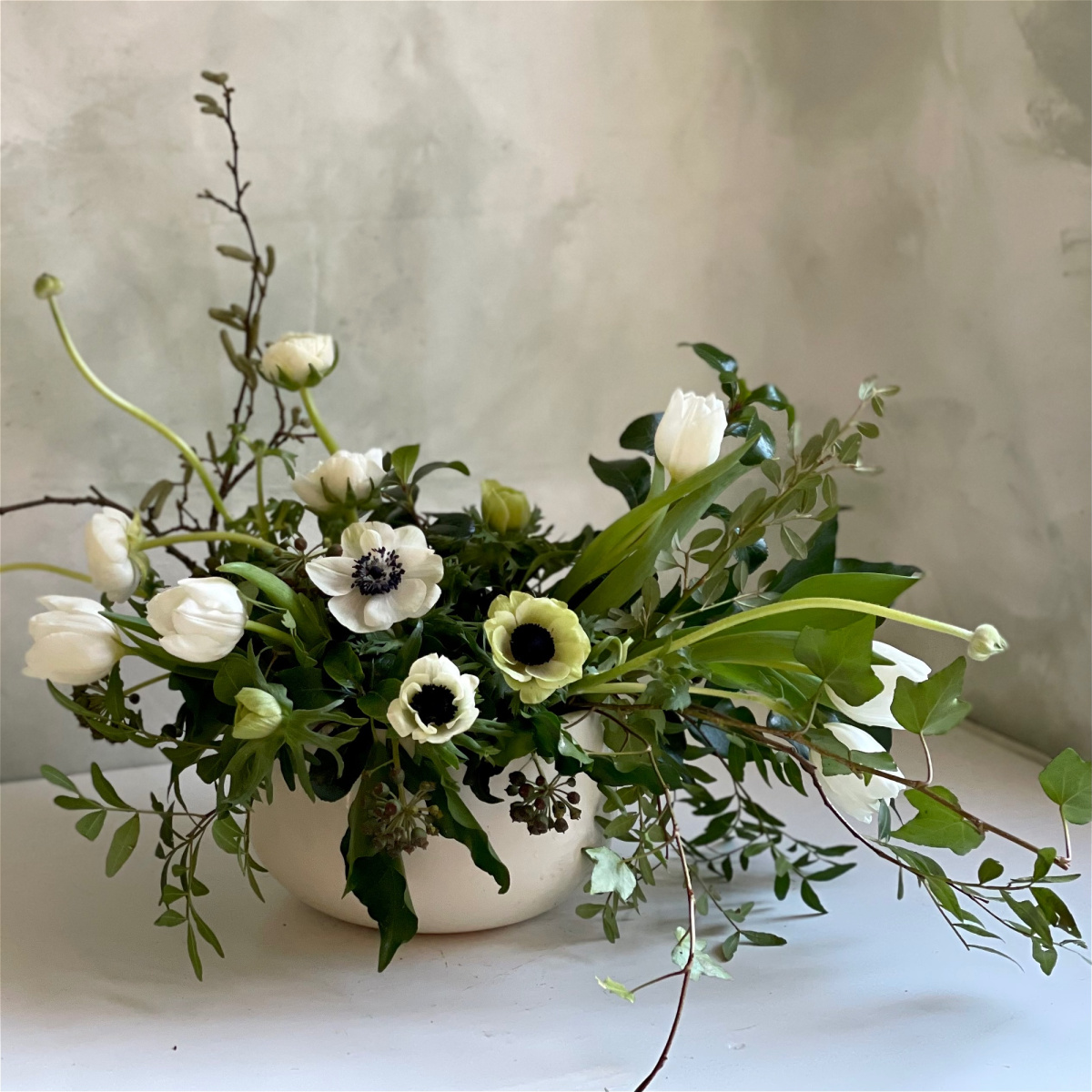 Join me to create a beautiful spring bowl arrangement using sustainable, foam-free floristry methods at my studio in Blackmore, Ingatestone, Essex.